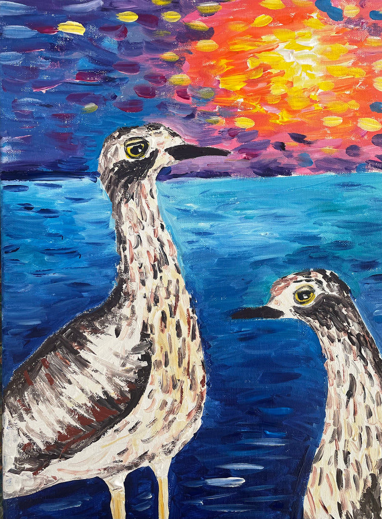 Saturday 25th October - 1-3pm. Curlew painting fun!!!đ€© Â This is a guided workshop where we be learning how to draw Curlews and paint them using acrylic paint on canvas. Please bring a water bottle.$45