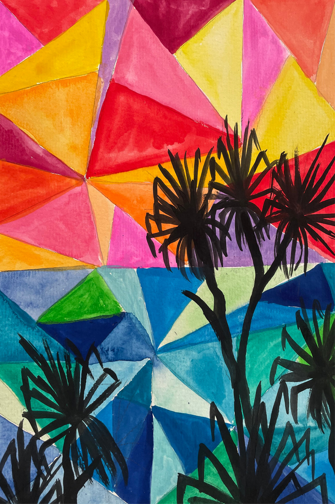 Saturday 27th 1-3pm. We will be learning how to draw Pandanus trees and a beautiful geometric watercolour sunset on quality paper. Please bring a water bottle.